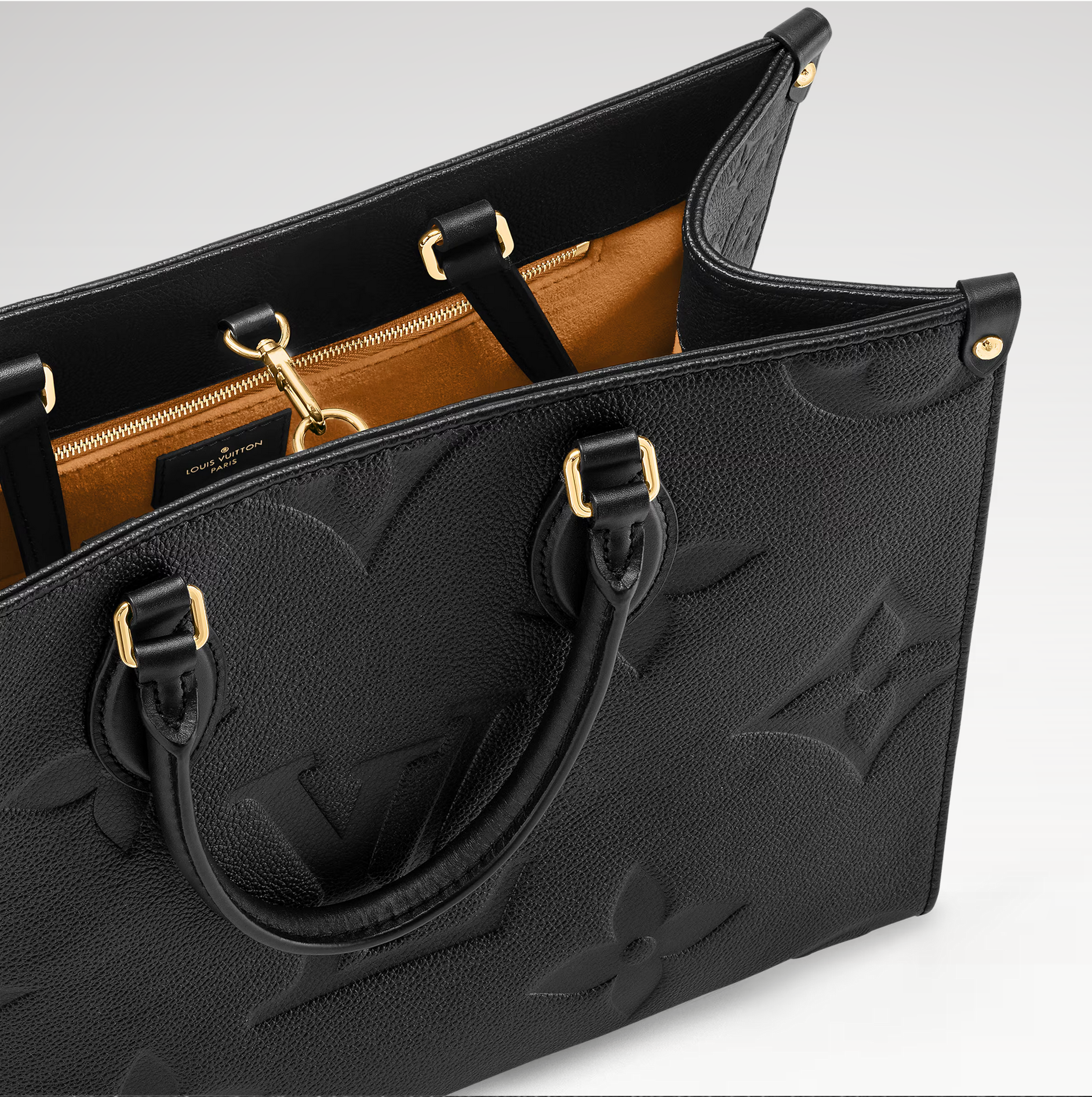 The Louis Vuitton Onthego MM tote bag in grained Monogram Empreinte, a soft leather that